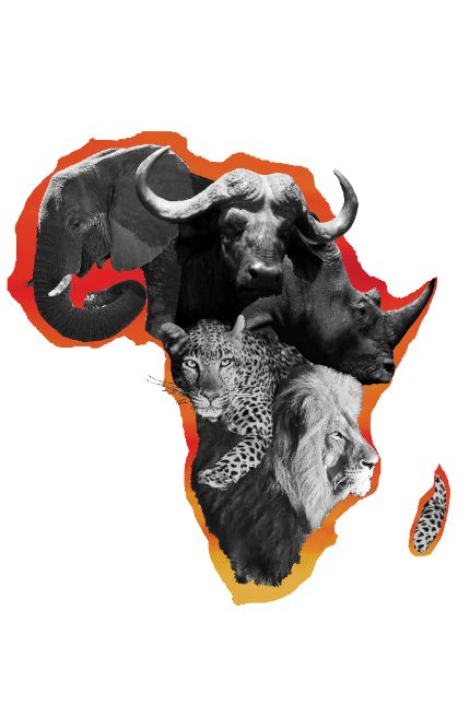 Big 5 Safari Animals in Shape of Africa and Madagascar